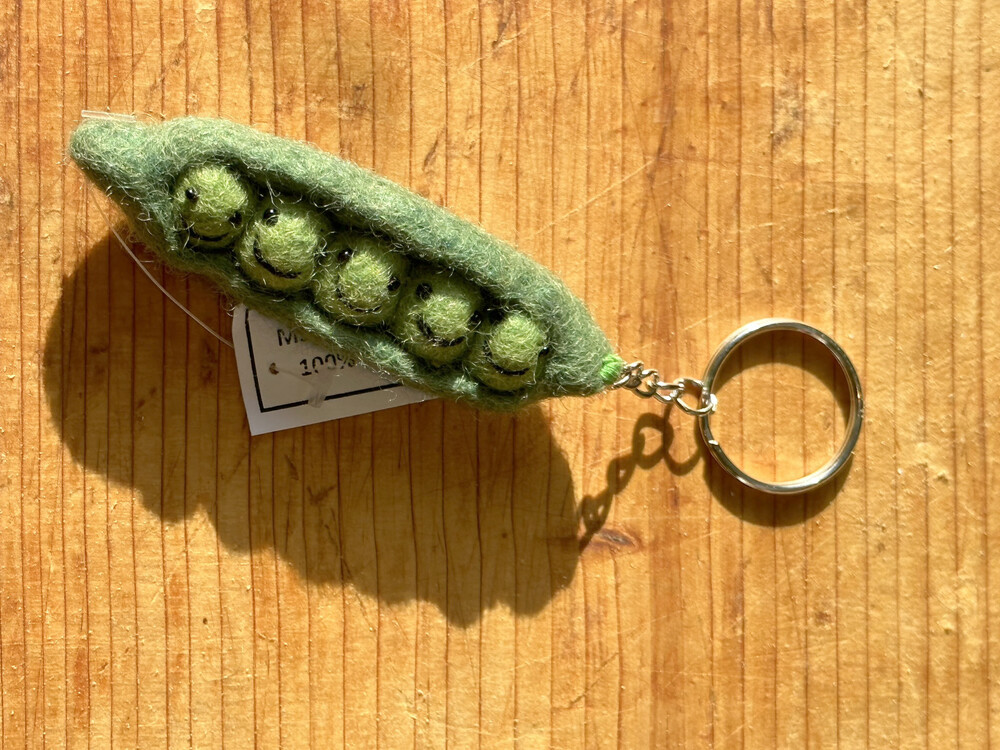 다섯 알의 완두콩이 들어있는 디자인으로 눈과 입이 달려있는 귀여운 장식으로 아이들이 좋아합니다.