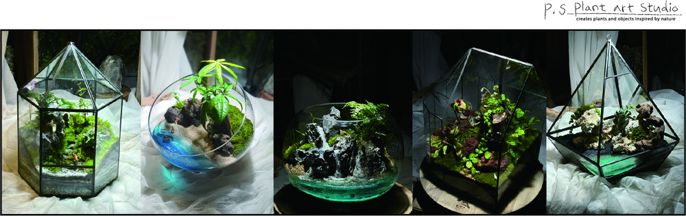 1.포레스트플랜츠. 2.해변 물표현 테라리움. 3.폭포 물표현 테라리움. 4.온실 테라리움. 5.사막의 오아시스