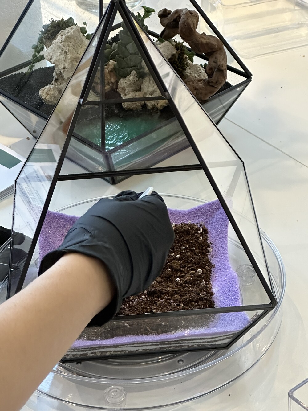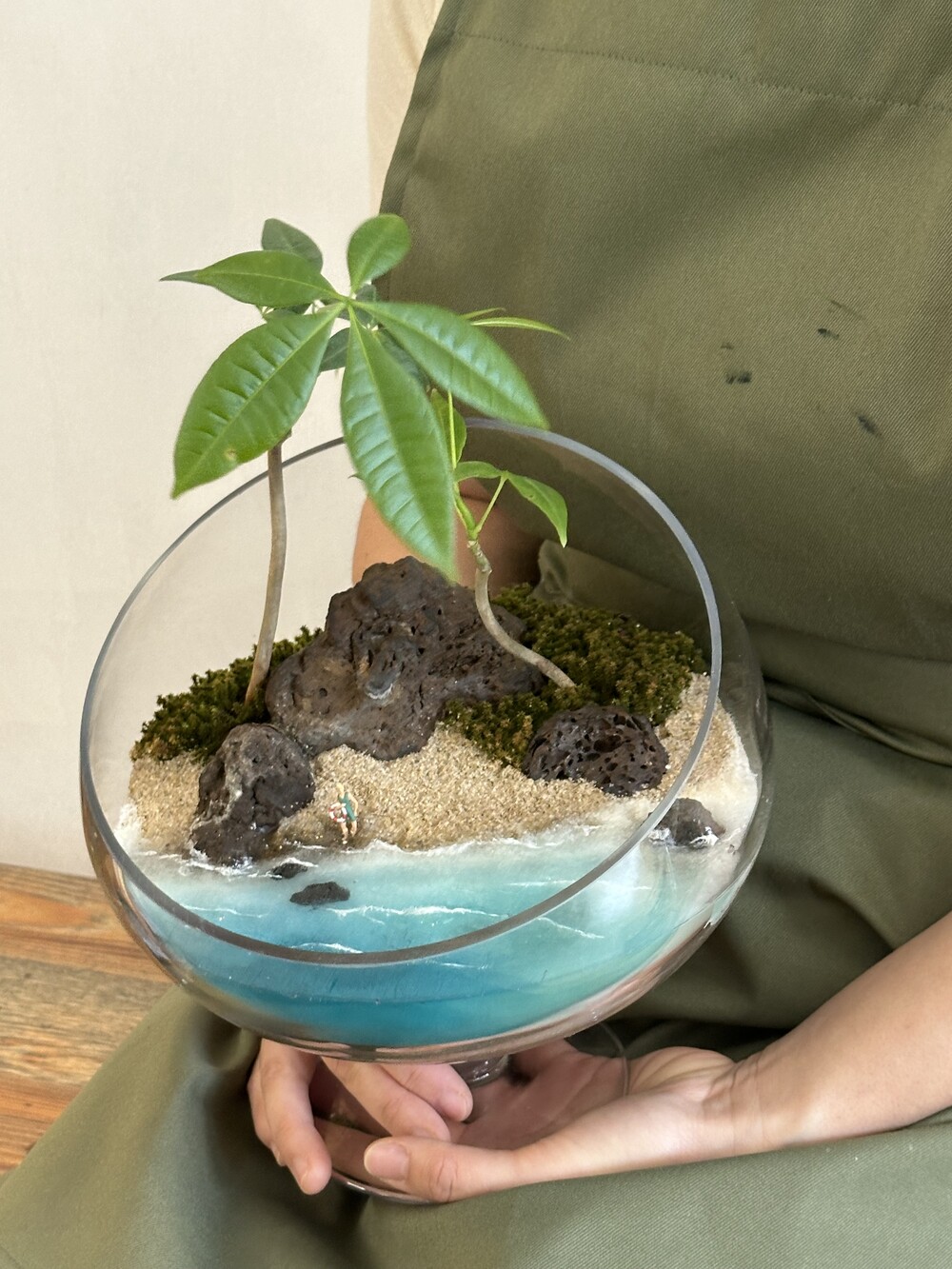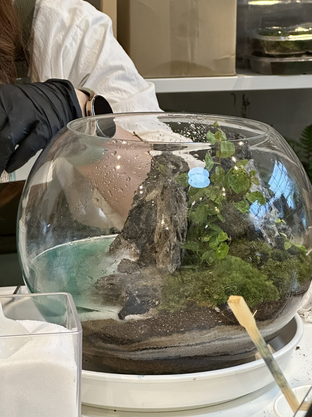 이끼 테라리움, 식물 테라리움, 다육 선인장 테라리움, 물표현 테라리움 등 총 5작품을 실습하게 되며