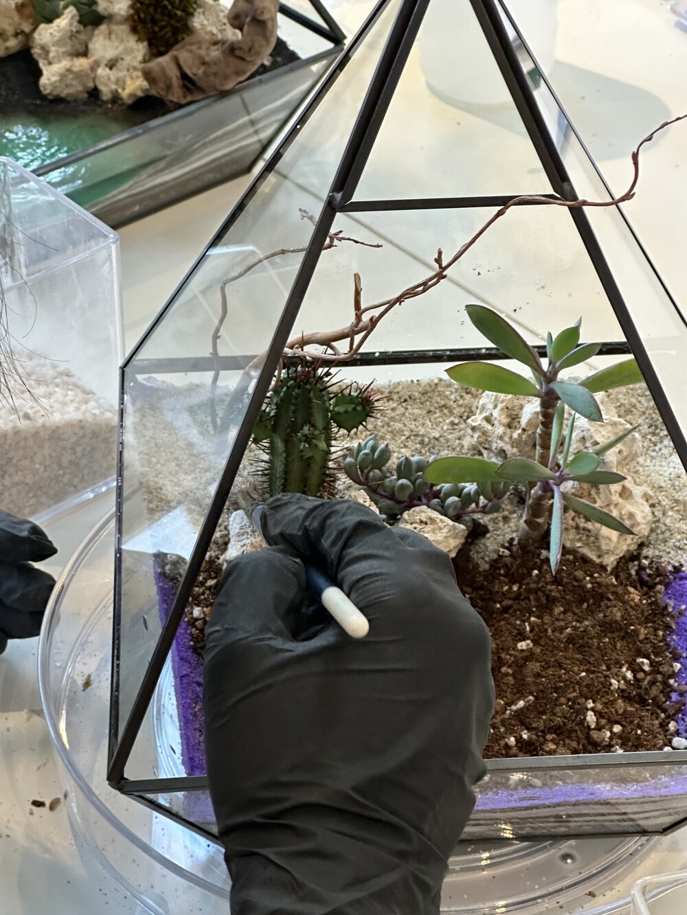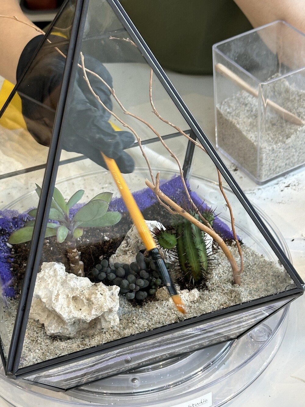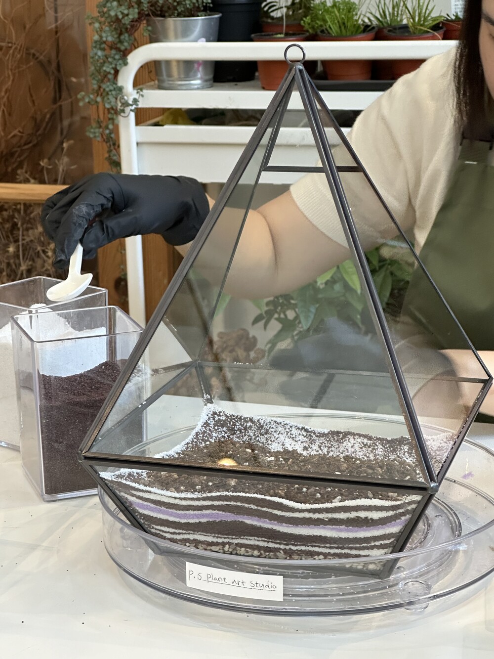 이끼 테라리움, 식물 테라리움, 다육 선인장 테라리움, 물표현 테라리움 등 총 5작품을 실습하게 되며