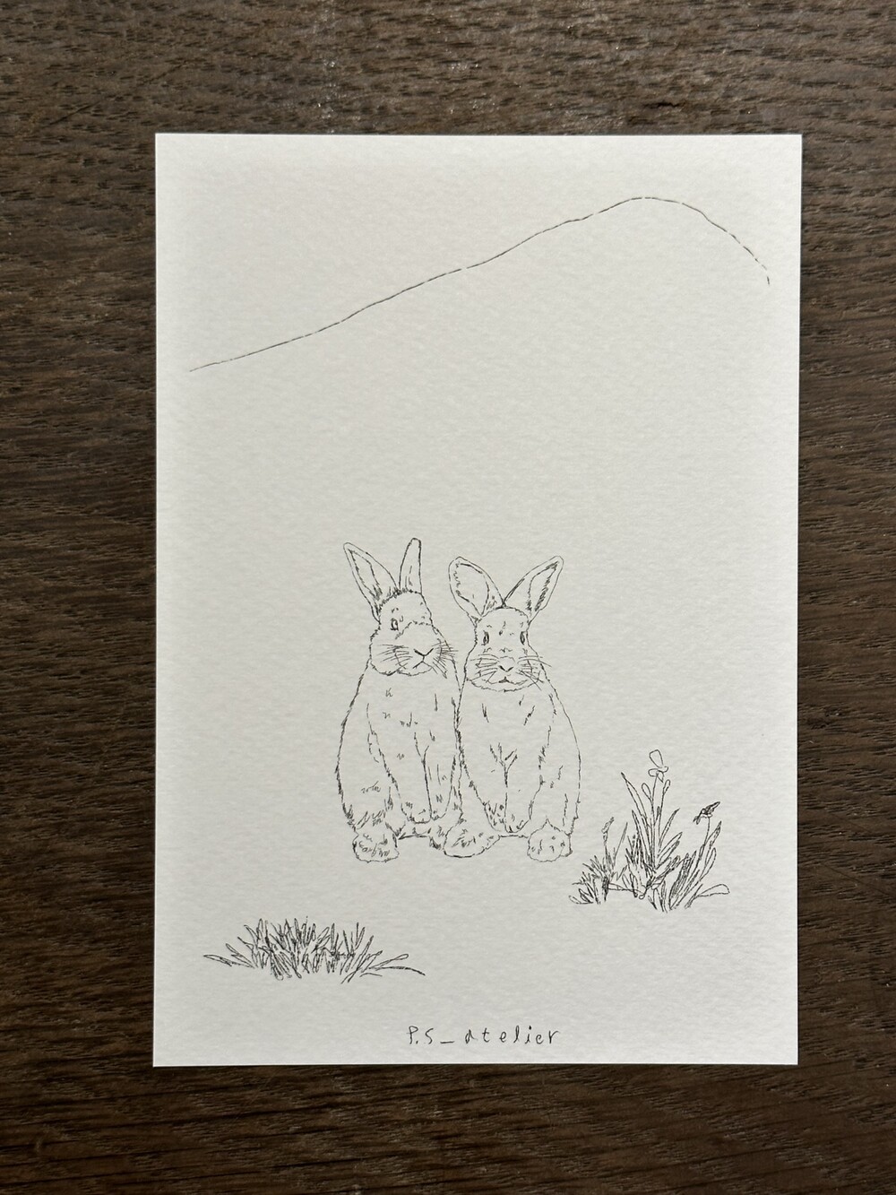풀숲을 자유롭게 폴짝 폴짝 뛰어다니는 토끼를 떠올리며 작업한 스케치 엽서는