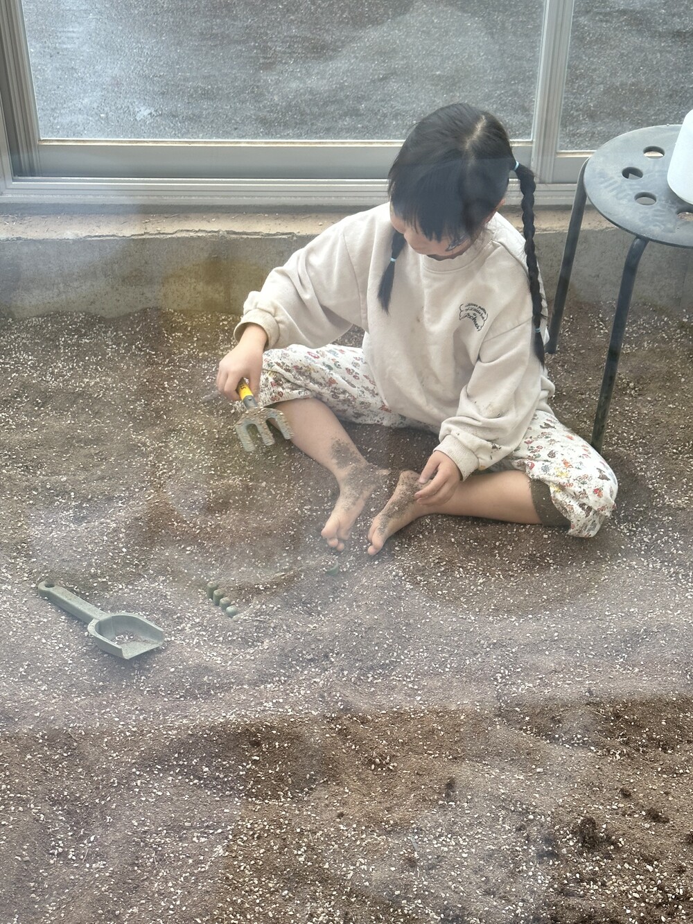 아이가 충분히 흙에서 자유롭게 놀이하도록 주어진 공간입니다.*