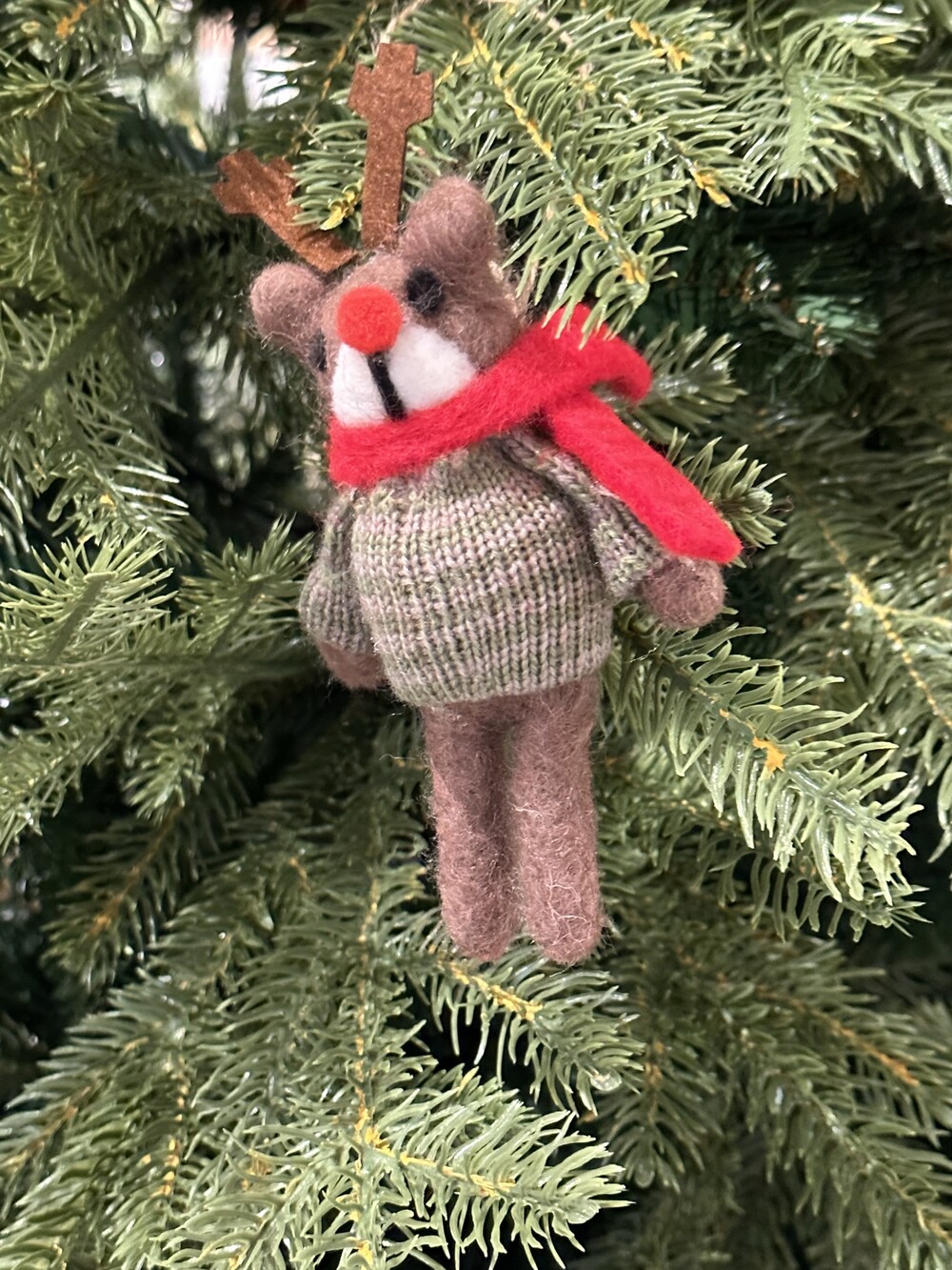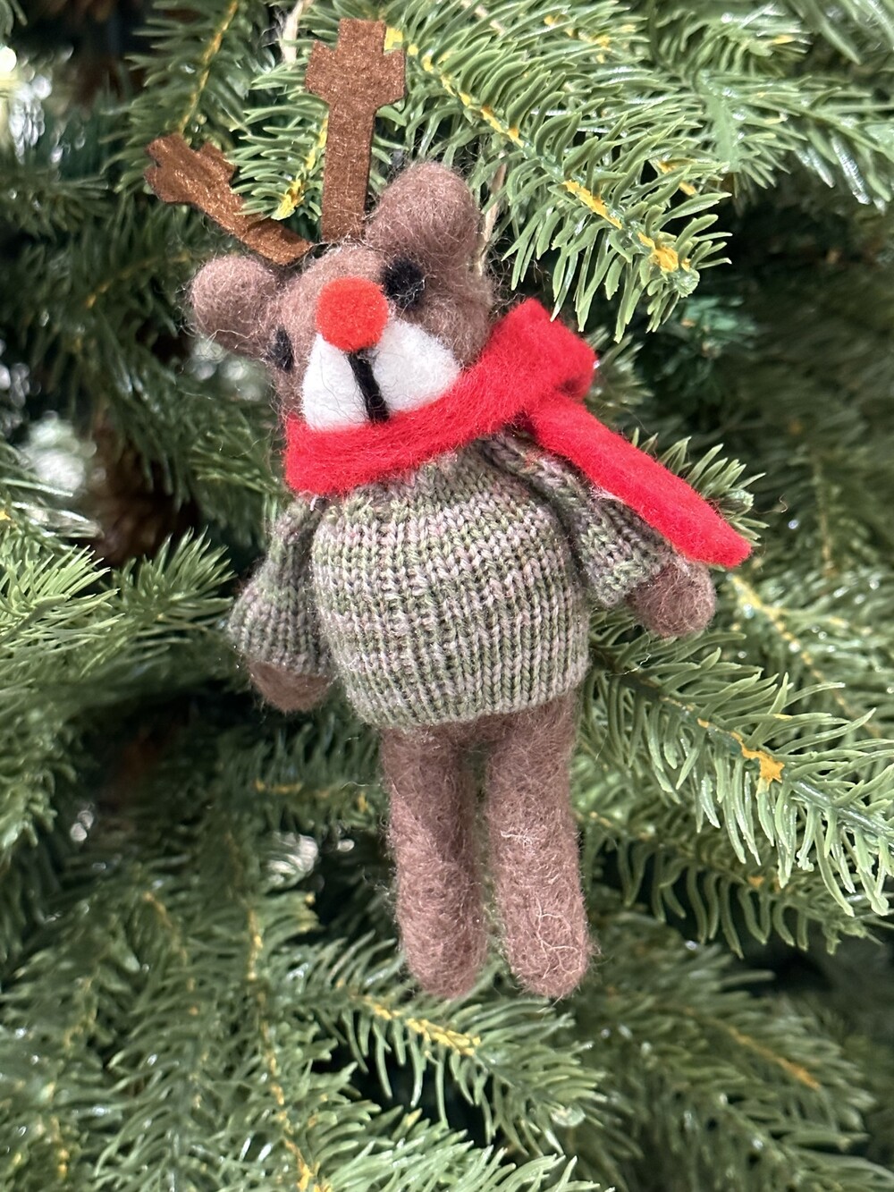 양모 소재로 제작된 귀여운 루돌프 사슴 오너먼트 입니다.