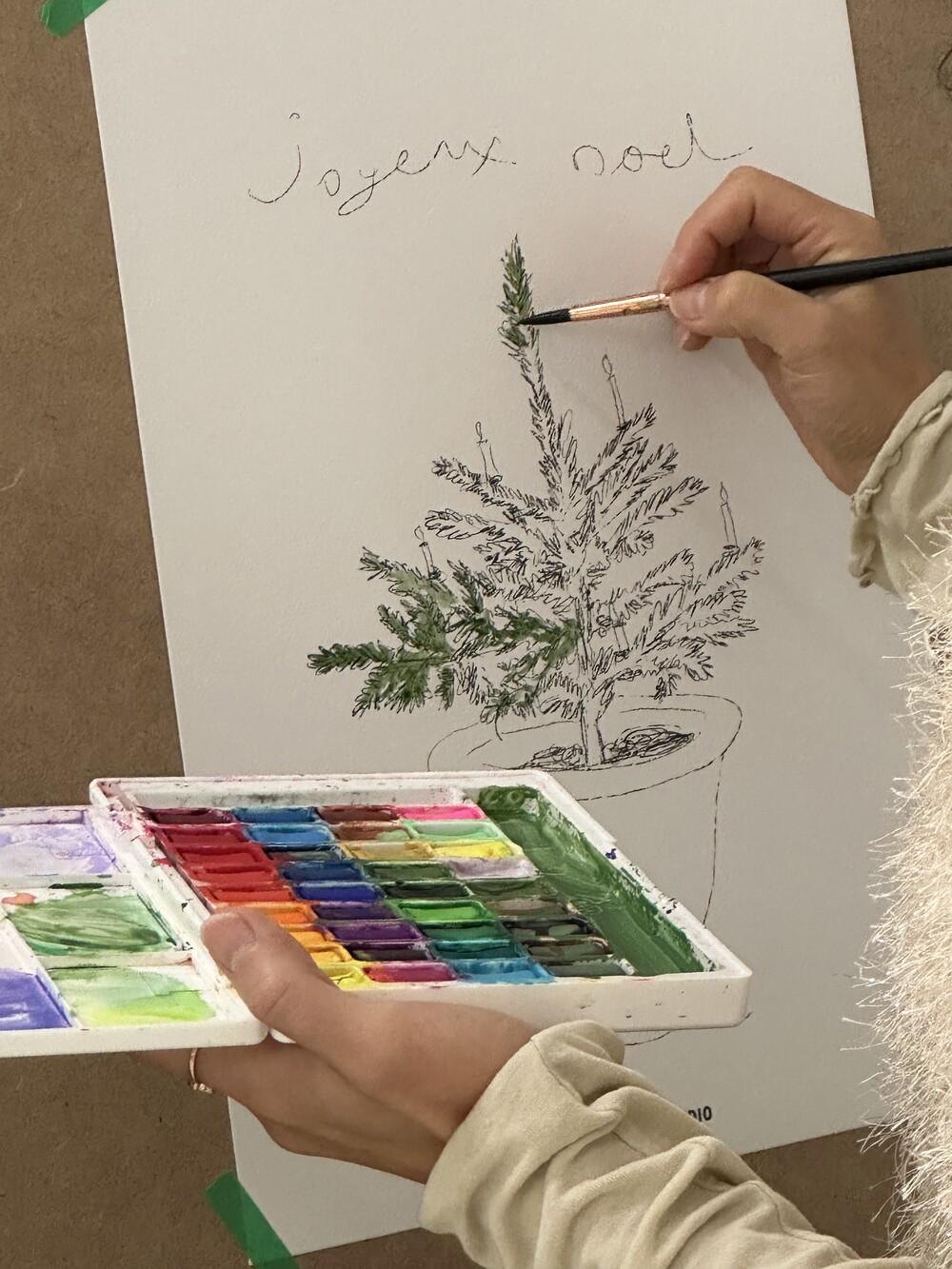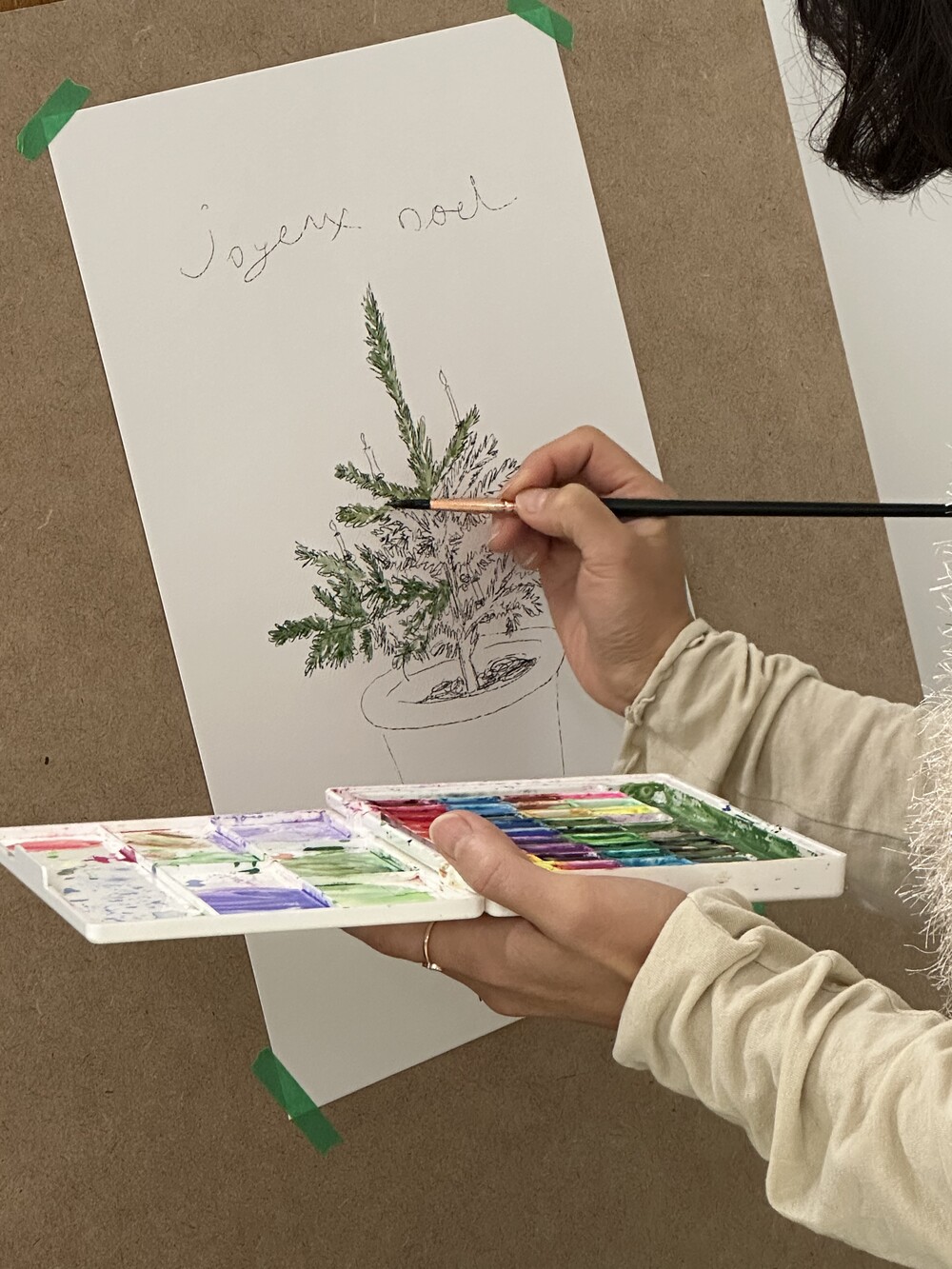 ***피에스 아뜰리에는 피에스의 스케치 엽서와 포스터를 채색하며