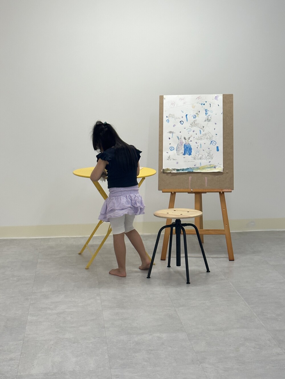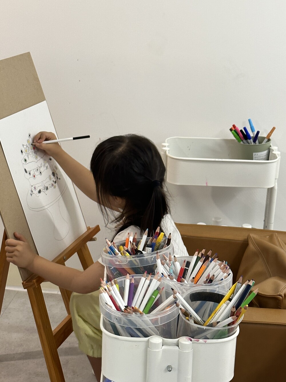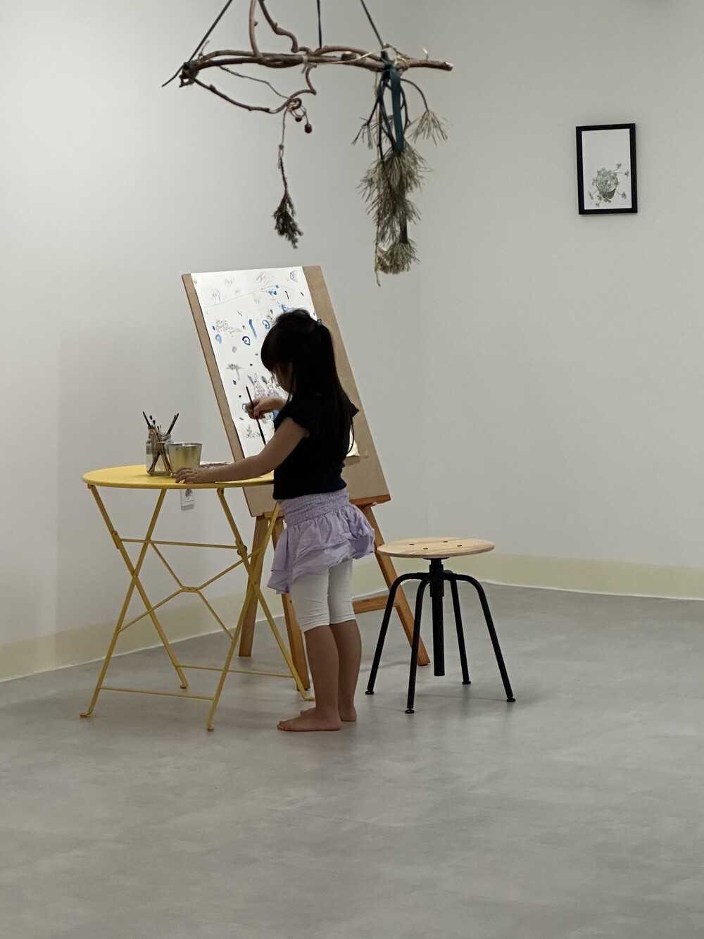 이젤자리에 앉아 다양한 채색재료를 직접 경험하며 재료의 특성을 익히며 자유롭게 창작하는 아트웍 시간을