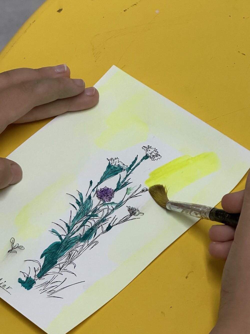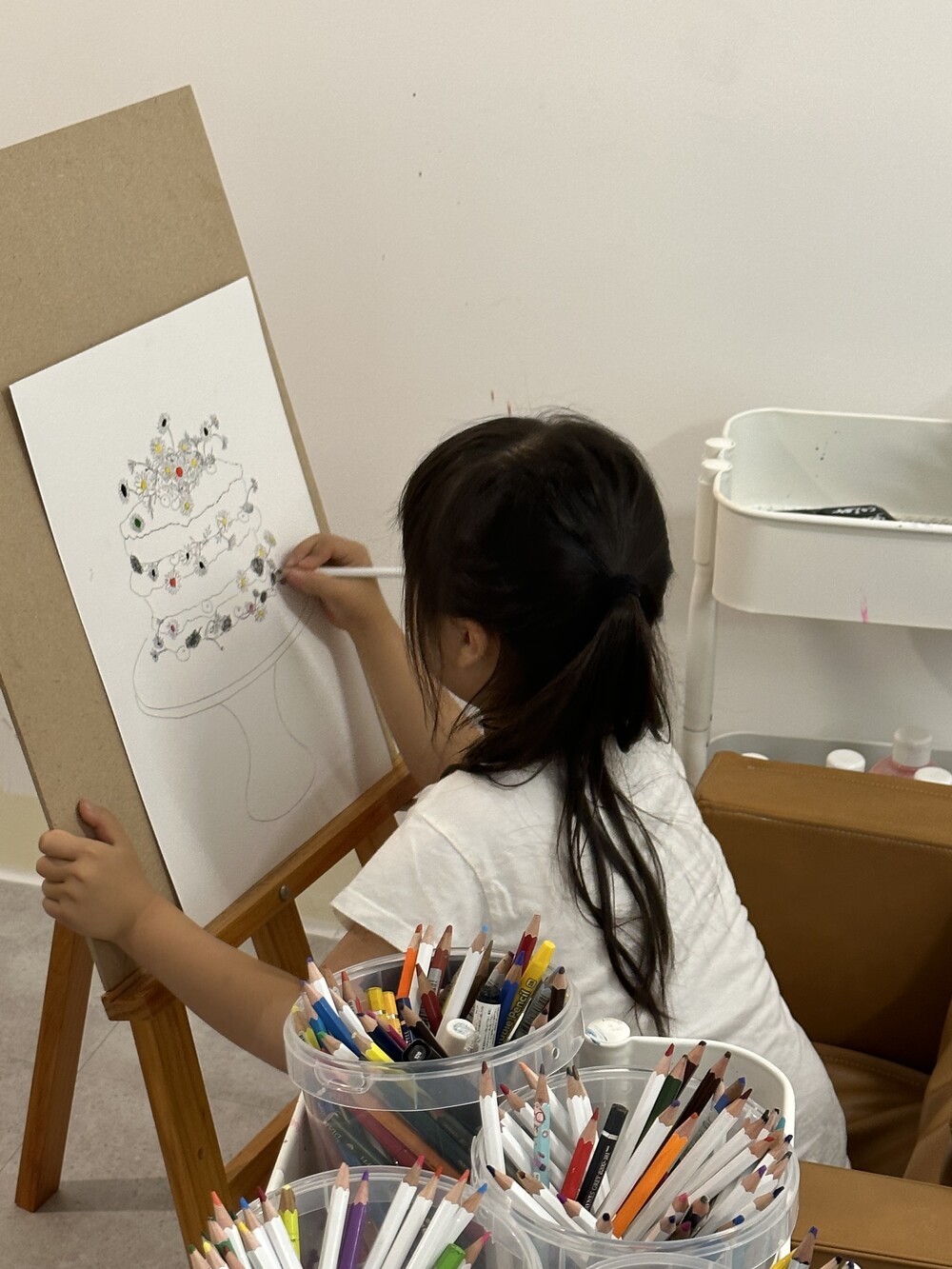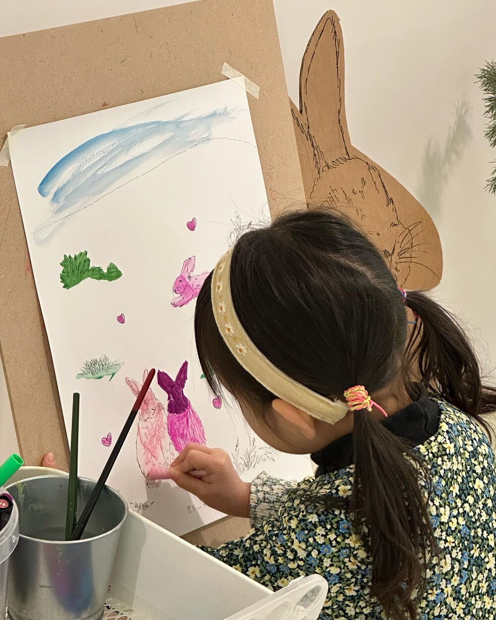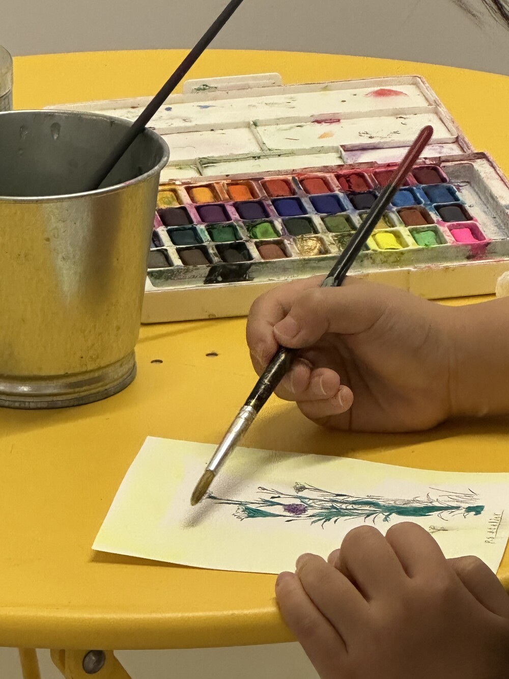 이젤자리에 앉아 다양한 채색재료를 직접 경험하며 재료의 특성을 익히며 자유롭게 창작하는 아트웍 시간을