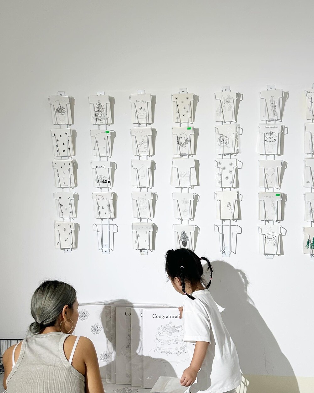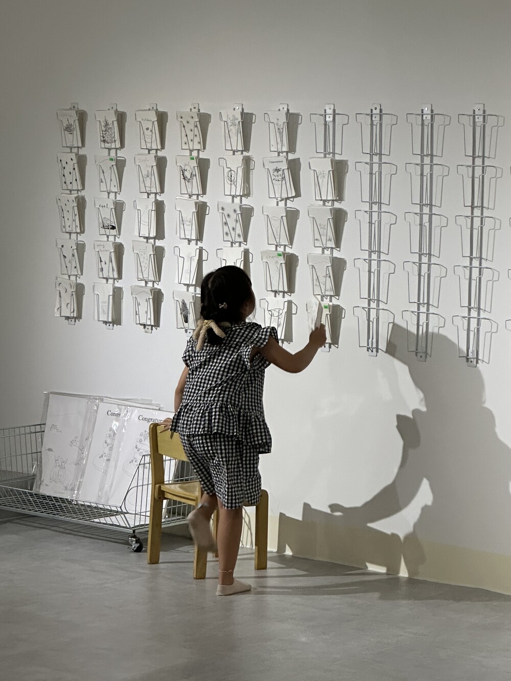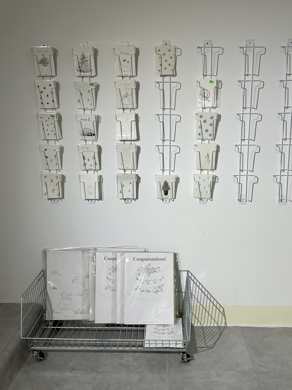 이젤이 놓여있는 각 구역별로 예약한 시간동안 직접 고른 스케치의 포스터와 엽서를